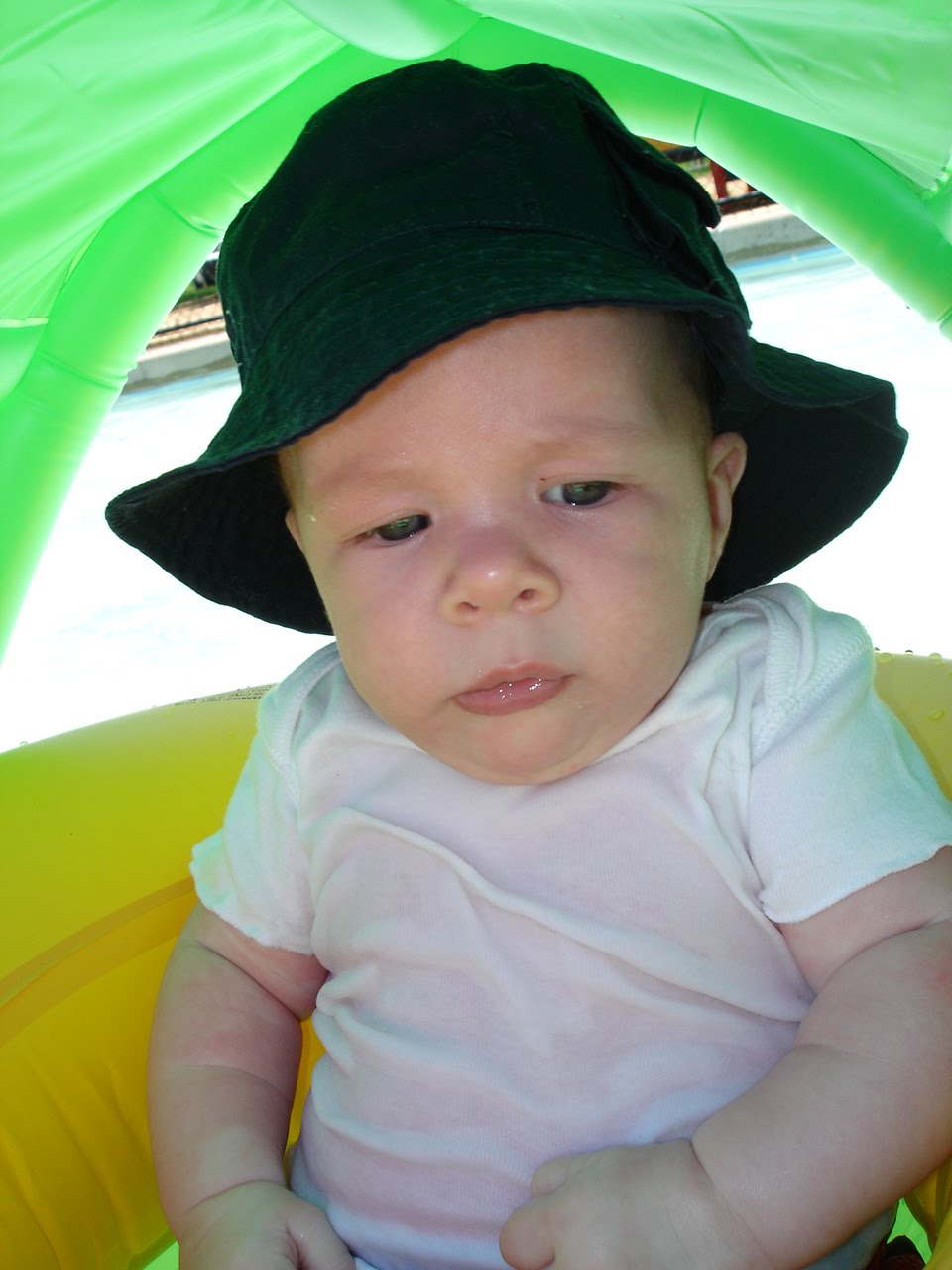 Here Ty is doing the song, "This is the way we splash our hands, splash our hands, splash our hands...This is the way we splash our hands, in the swimming pool." :)